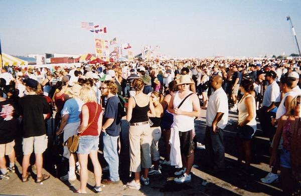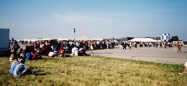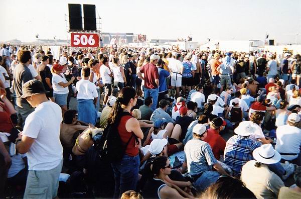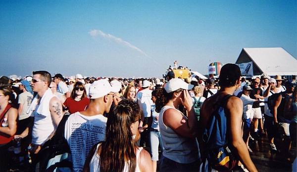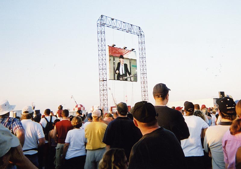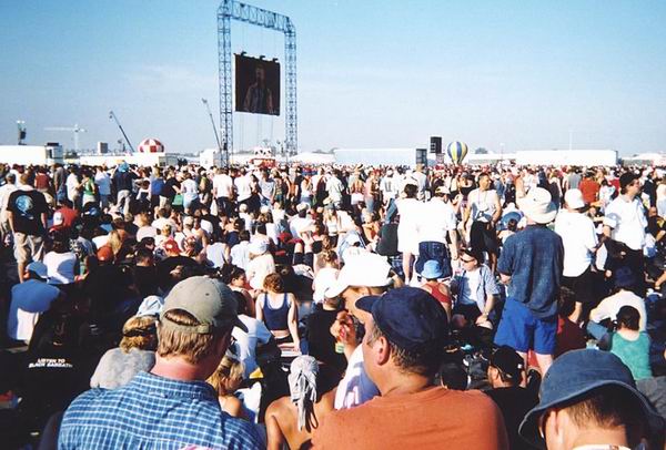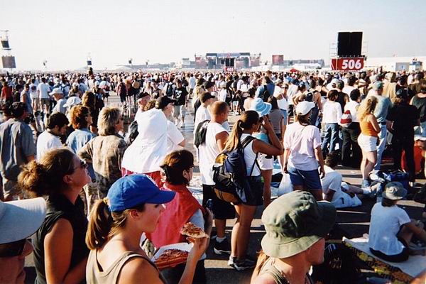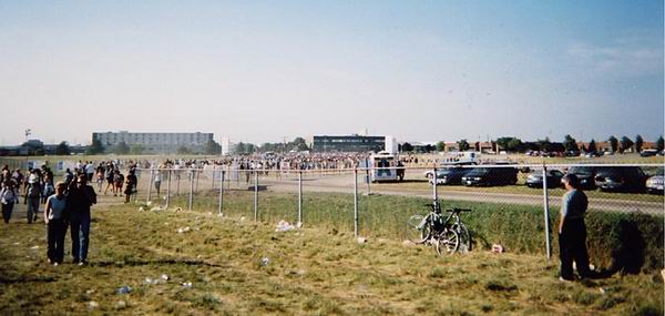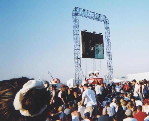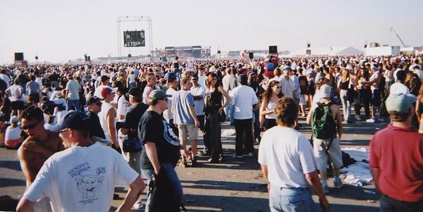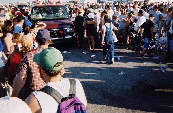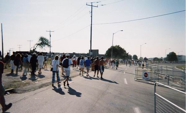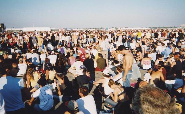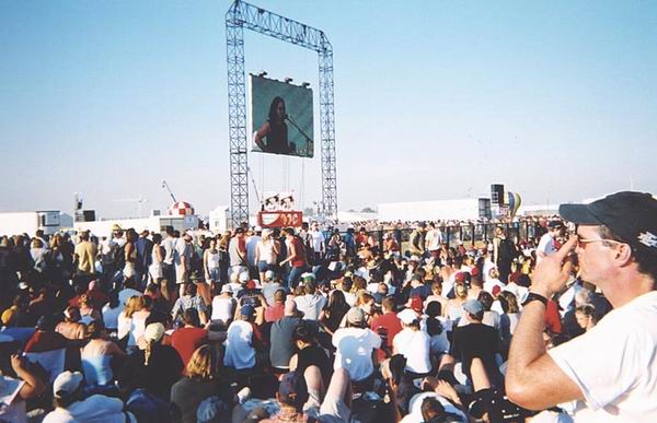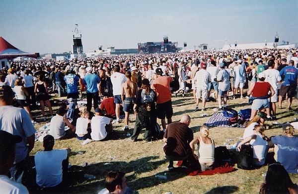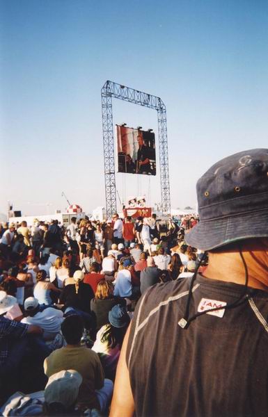 The entrance I used (north gates) was behind the stage so it was a long walk past hot dog venders with line-ups of about 50 people each just to get to the main "seating" (ie. the ground) area. When I got to the crowd off to the left side of the stage (which was still probably 500 feet or futher from the stage itself) all I could really do was just keep walking until I found a place to sorta fit in. So I kept walking.... and walking... and walking... and walking... You really cannot imagine what half a million people in one place looks like until you've seen it in person. Trust me, it's a LOT of people!!